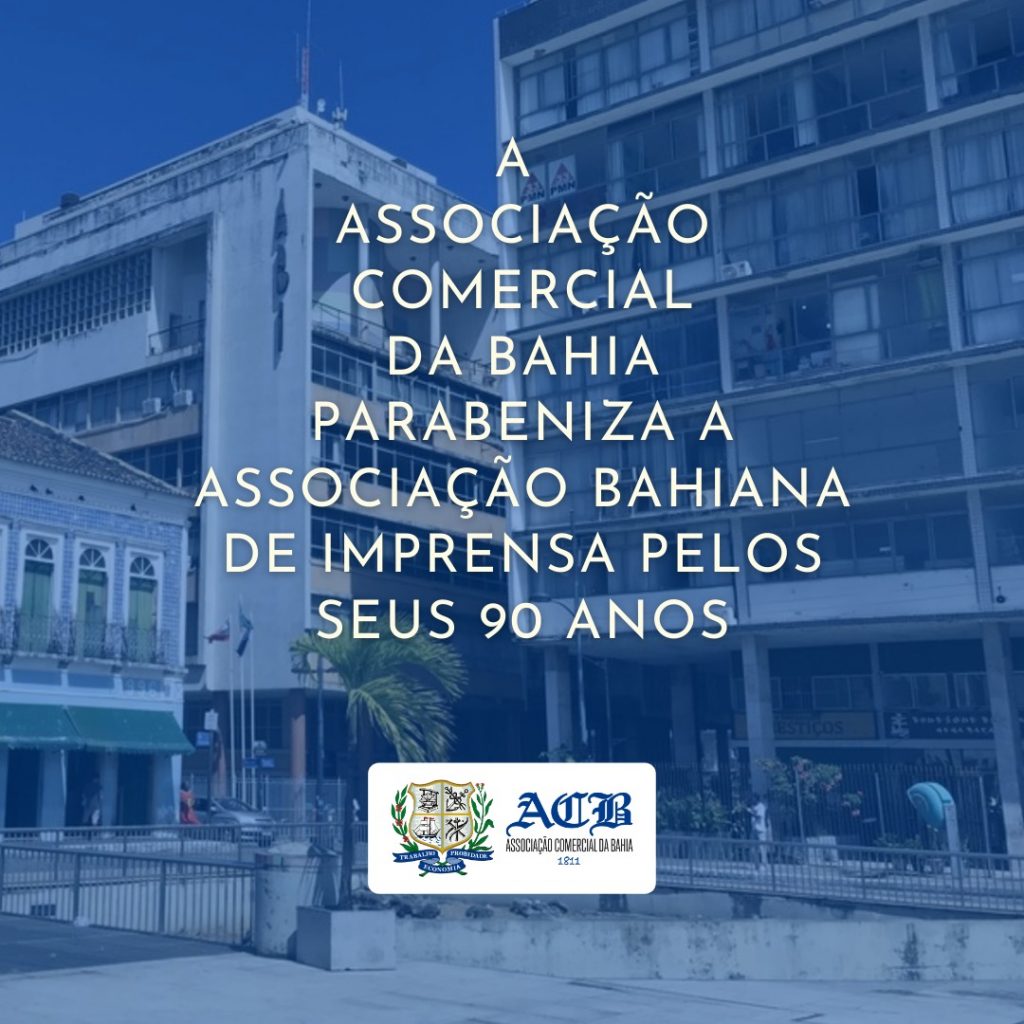 A Associação Comercial da Bahia parabeniza a Associação Bahiana de Imprensa pelos seus 90 anos